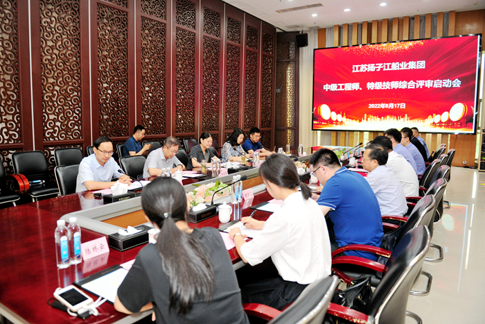 會上,張宏飛副董事長向人社局領(lǐng)導(dǎo)介紹了企業(yè)當(dāng)前生產(chǎn)、經(jīng)營運(yùn)行情況以及近年來公司在高技術(shù)、高技能人才培養(yǎng)等方面的情況。他說到,今年新?lián)P子造船獲得了江蘇省第二批特級技師評聘試點(diǎn)企業(yè)資質(zhì),公司將充分利用好技能人才自主評價(jià)試點(diǎn)資格,客觀、公正地做好人才評價(jià)工作,努力培養(yǎng)一批高水平、精業(yè)務(wù)、有作為的技術(shù)人才隊(duì)伍,為公司穩(wěn)健發(fā)展持續(xù)輸入技術(shù)動力。靖江市人力資源與社會保障局王海清局長對我司在高技術(shù)、高技能人才培養(yǎng)方面取得的成績給予了肯定,并表示靖江市人社部門將進(jìn)一步強(qiáng)化服務(wù)意識,全面促進(jìn)企業(yè)發(fā)揮用人主體作用,繼續(xù)加大用工人才保障與服務(wù),通過綠色惠企、惠才的各項(xiàng)優(yōu)惠和各項(xiàng)政策,服務(wù)企業(yè)構(gòu)建更加和諧的勞動關(guān)系。王局長指出,取得“雙自主”評審資格的企業(yè),應(yīng)當(dāng)以企業(yè)人才隊(duì)伍建設(shè)為目標(biāo),貼合實(shí)際,嚴(yán)格按照標(biāo)準(zhǔn)要求執(zhí)行,將企業(yè)真正需要的人才選拔出來。泰州市人力資源與社會保障局錢筱湄副局長作總結(jié)講話。首先她對靖江人社局在人才工作領(lǐng)域的貢獻(xiàn)表示肯定,對揚(yáng)子江船業(yè)近三年開展的專業(yè)技術(shù)中級職稱自主評審工作給予了認(rèn)可。她講到,揚(yáng)子江船業(yè)在泰州所有有資質(zhì)的試點(diǎn)評價(jià)企業(yè)中屬于排頭兵,近3年開展的高技術(shù)人才評價(jià)總數(shù)占比達(dá)到46.8%。今年揚(yáng)子江船業(yè)集團(tuán)也正式獲得了江蘇省特級技師自主評審的資質(zhì),企業(yè)要嚴(yán)格參照自主評審標(biāo)準(zhǔn),確保選拔結(jié)果符合企業(yè)實(shí)際需求。她勉勵企業(yè)繼續(xù)總結(jié)經(jīng)驗(yàn)、創(chuàng)新思路,提高人才評價(jià)的科學(xué)性、規(guī)范性和針對性,在優(yōu)秀人才挖掘和人才隊(duì)伍建設(shè)中樹立標(biāo)桿,做好示范,不斷加速推動專技人才落地,為泰州市船舶類人才建設(shè)工作貢獻(xiàn)力量。泰州市人力資源與社會保障局職稱處張曉峰處長宣讀2022年度揚(yáng)子江船業(yè)集團(tuán)專業(yè)技術(shù)中級職稱開評批復(fù)后,蔣才平主任委員組織12位評委學(xué)習(xí)2022年船舶與海洋工程中級專業(yè)技術(shù)資格評審活動實(shí)施方案,并啟動評審工作。