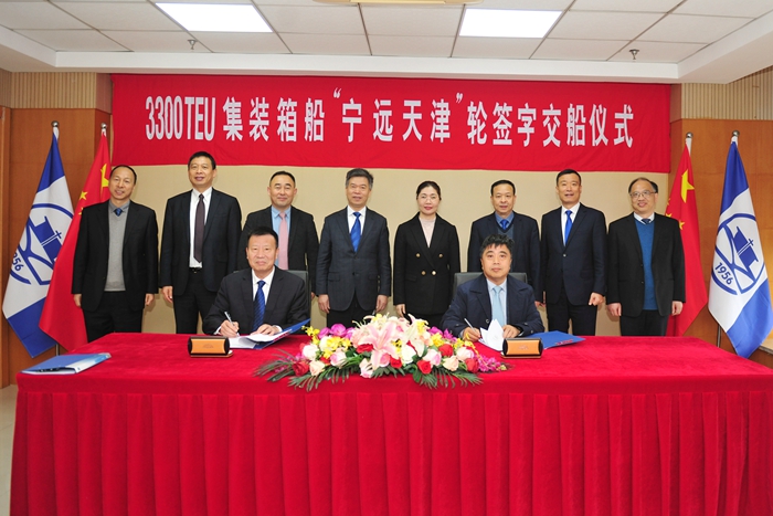 “寧遠(yuǎn)天津”輪于2023年2月點(diǎn)火開工。在寧波遠(yuǎn)洋、上海船舶設(shè)計(jì)院、雙希監(jiān)造組、CCS船級(jí)社以及船廠上下員工等各方的通力合作和相互成就下,歷時(shí)10個(gè)月建成交付。命名當(dāng)天,在各方嘉賓的共同見證下,寧波遠(yuǎn)洋黨委委員、副總經(jīng)理陳加挺先生與我集團(tuán)副總經(jīng)理兼新?lián)P子造船總經(jīng)理杜成忠先生分別代表雙方簽署交船文件。