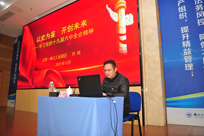 為深入學習宣傳貫徹黨的十九屆六中全會精神,12月29日下午,公司特邀江陰市委宣講團成員、園區黨委委員、紀委書記劉銘來司進行黨的十九屆六中全會精神宣講。