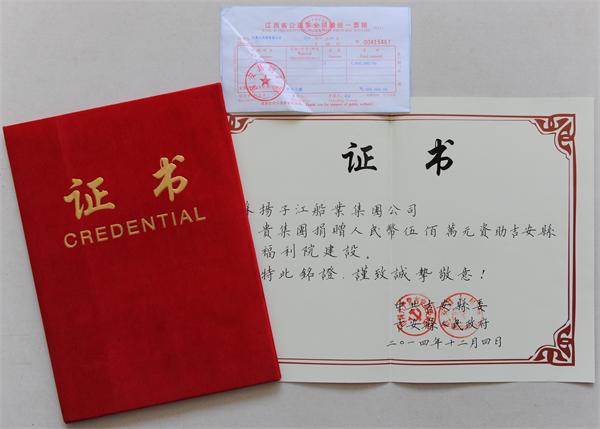 On December 4th, Jiangsu Yangzijiang Group company donated RMB five million to Ji’an county of Jiangxi province, specially used for construction of Ji’an county social welfare institutions.